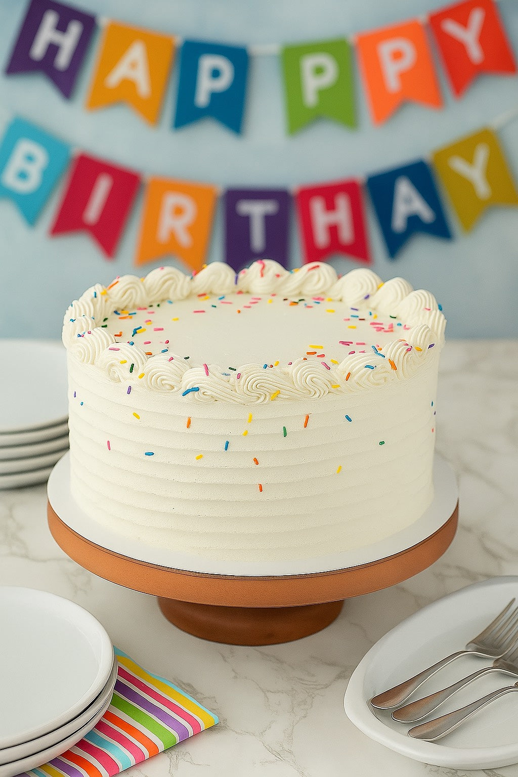 She’s cute, she’s colourful, and she’s definitely not edible (but looks good enough to eat!). The Fauxfetti is our sassy spin on the classic Funfetti cake, featuring a smooth white “frosted” finish, a dreamy piped shell border, and a confetti explosion of the famous “Get Faked” sprinkles.